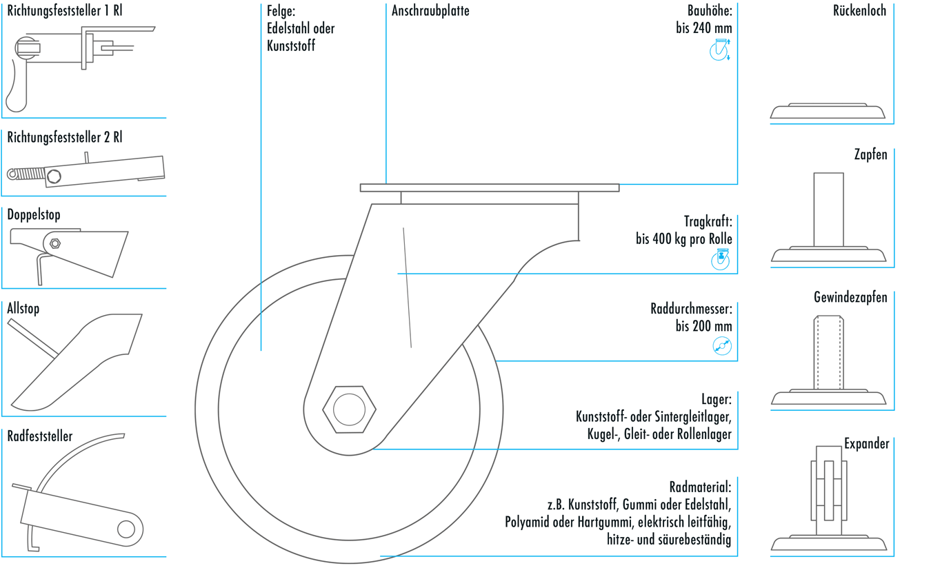 Alternativen sind für die verschiedenen Anforderungen kombinierbar, sowohl bei Transportgeräte- als auch bei Apparaterollen.